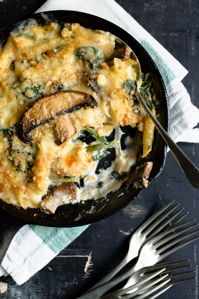 Pasta Bake with Spinach and Portobello Mushrooms in Bechamel Sauce