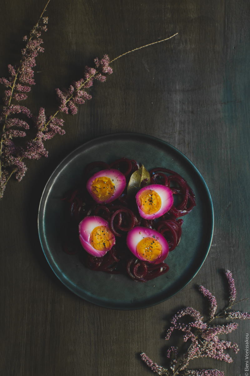 Και δεν είναι μόνο τα αυγά. Είναι και το παντζάρι και τα κρεμμύδια. Τα οποία γίνονται κι αυτά τουρσί. Κάντε μου μια χάρη και δοκιμάστε τα με φρυγανιές, τυρί κρέμα και καπνιστό ζαμπόν. Αχ.